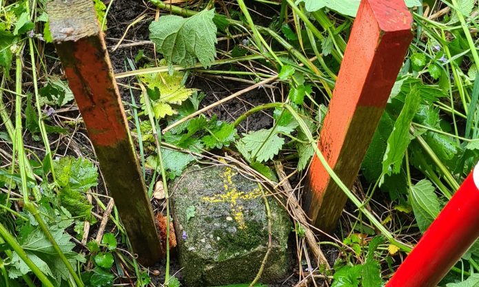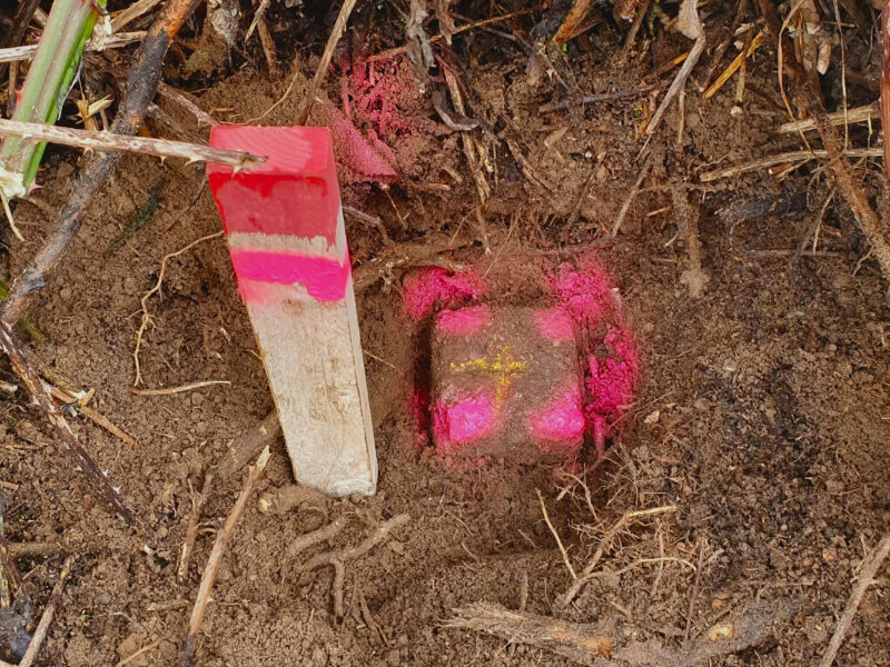 - Übertragung der neuen Grenzpunkte in die Örtlichkeit und Abmarkung der neuen Grenzpunkte